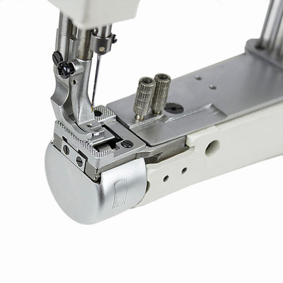 Needle feed is a two-part system where the needle moves in tandem with the feed dog to pull the fabric through the machine. The needle feed can handle both thick and thin applications but works well for projects of a variable thickness and long seam runs.